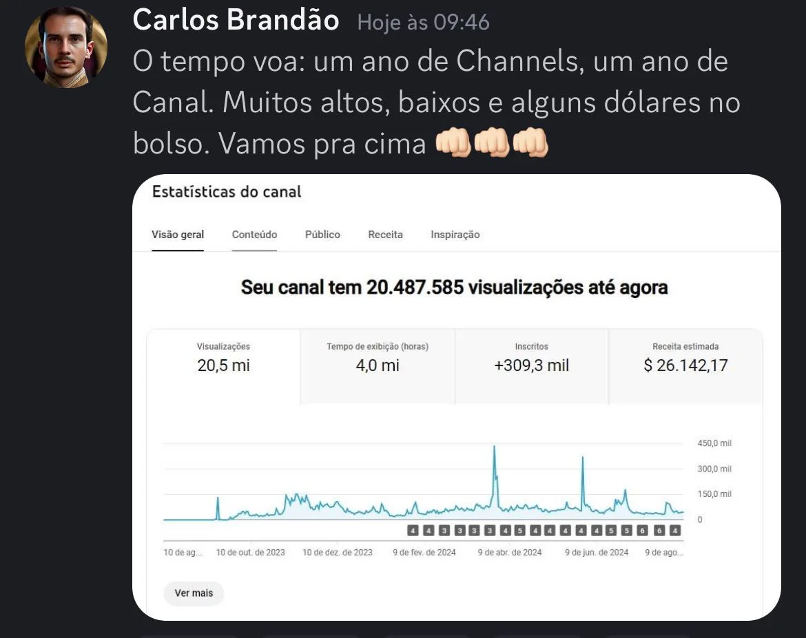 Participamos de mentorias com os maiores nomes do YouTube mundial - como MrBeast e Derral Eves - vamos aos maiores eventos de YouTube fora do Brasil, fazemos networking com as empresas e player com os maiores faturamentos do YouTube… Tudo isso para te trazer as melhores informações e estratégias, antes de todo mundo, se você escolher estar no lugar certo, junto das pessoas certas.