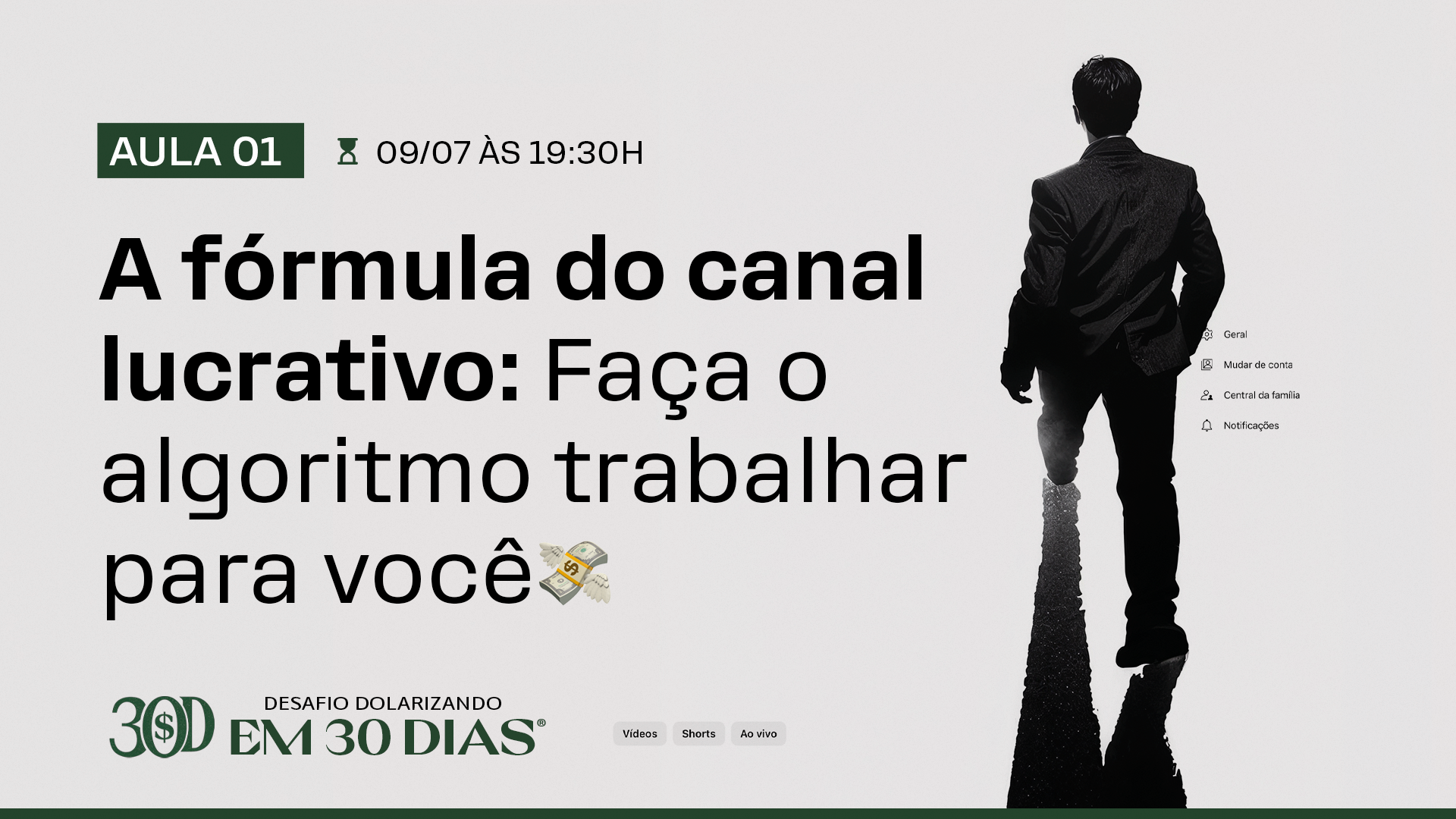 Um curso de atualização estratégica. Feito sob medida para adaptar o que você já sabe às novas diretrizes do YouTube. Liberado somente entre os dias 16 à 18/07.