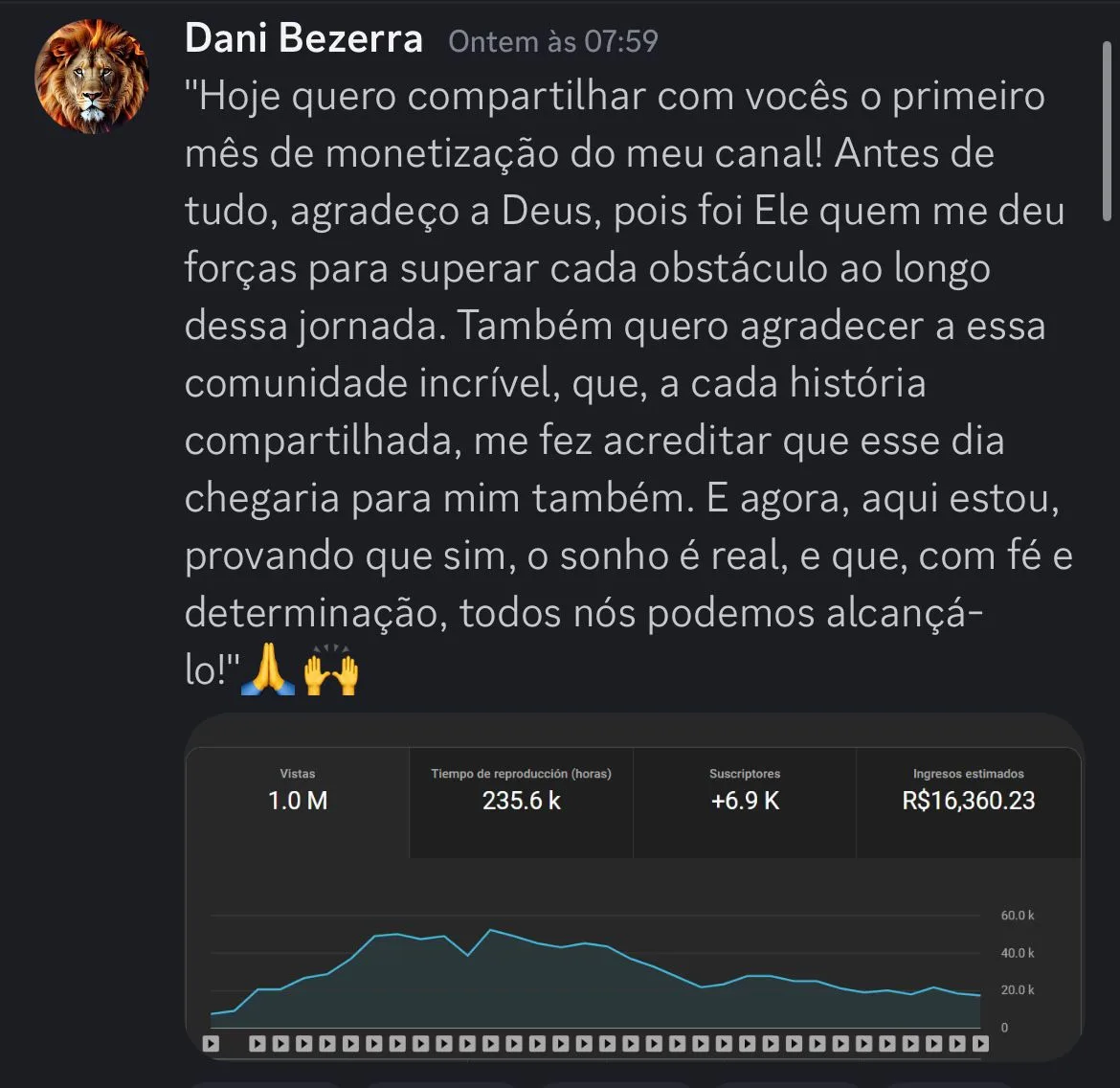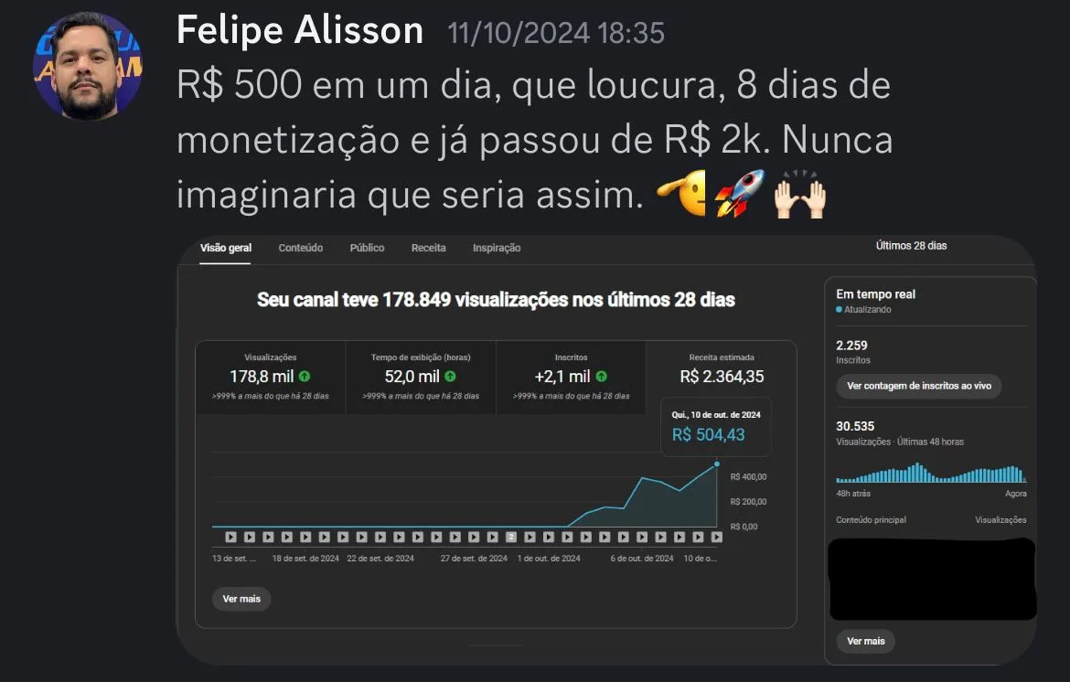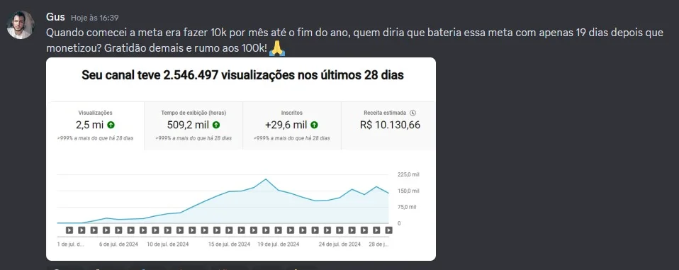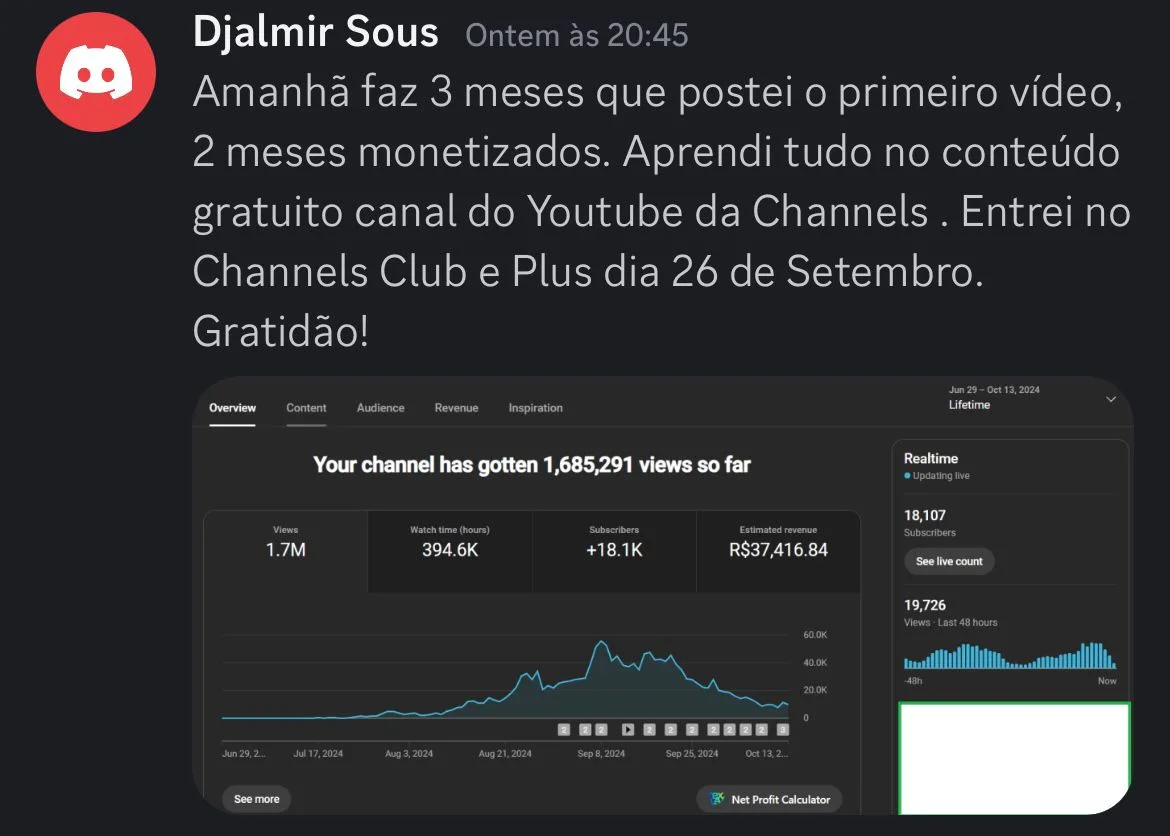 Te fazer monetizar o seu canal no Youtube e lucrar entre R$10.000 e R$20.000,00 por mês, sem precisar investir em mais nada além da mentoria, trabalhando duas horas por dia.