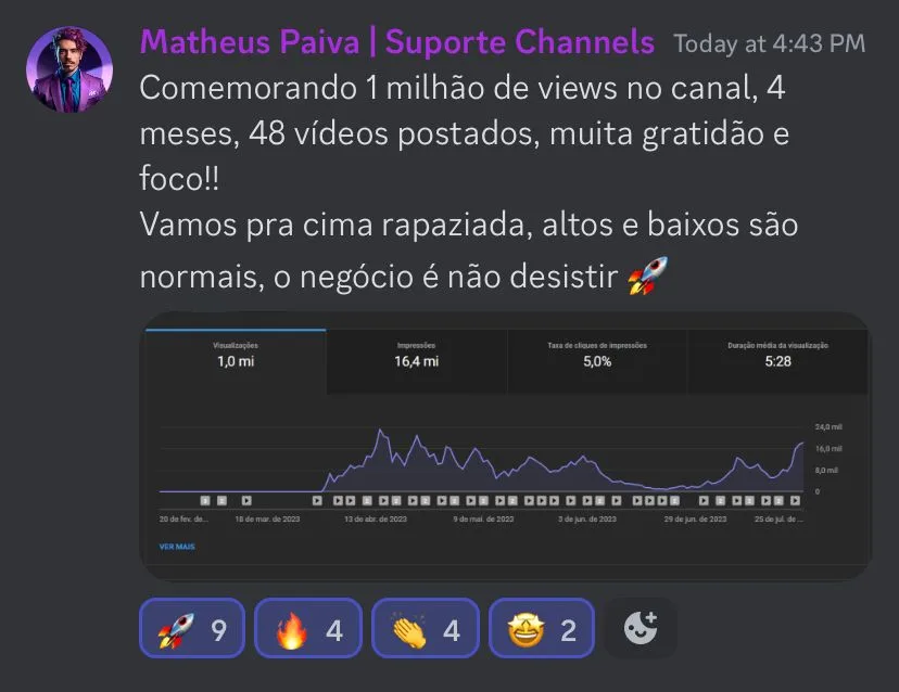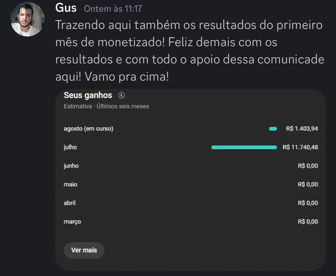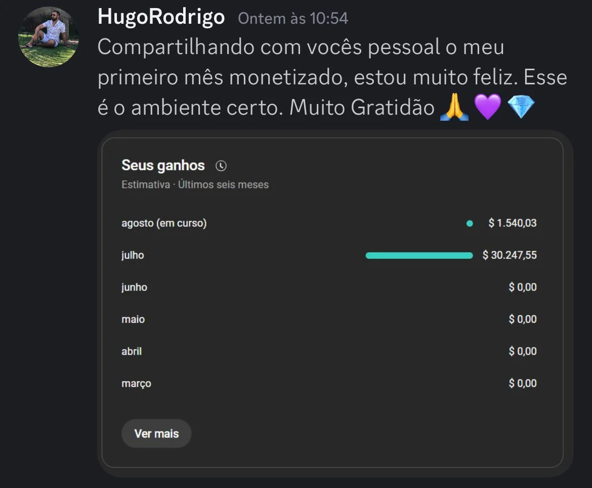 Durante 2 meses, você terá suporte direto no Discord com especialistas treinados para te ajudar a tirar dúvidas, corrigir rota e evoluir com segurança